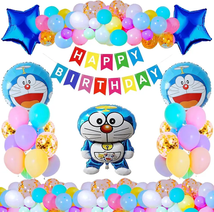 01 Pcs DoremonFoil Balloon,02 Pcs Round Foil Balloon,02 Pcs Star Foil Balloon,Birthday Paper Banner,30 Pcs Pastel Balloon – Multicolor
